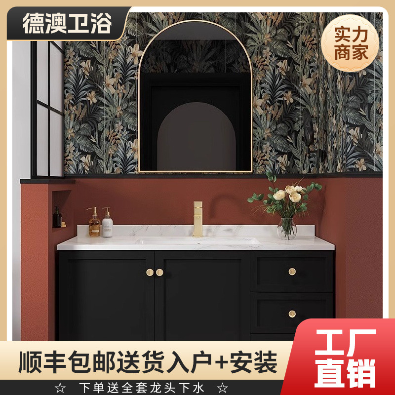 小紅書で人気の浴室キャビネットセット、セラミック一体型洗面台、中世風洗面台、バスルーム洗面台