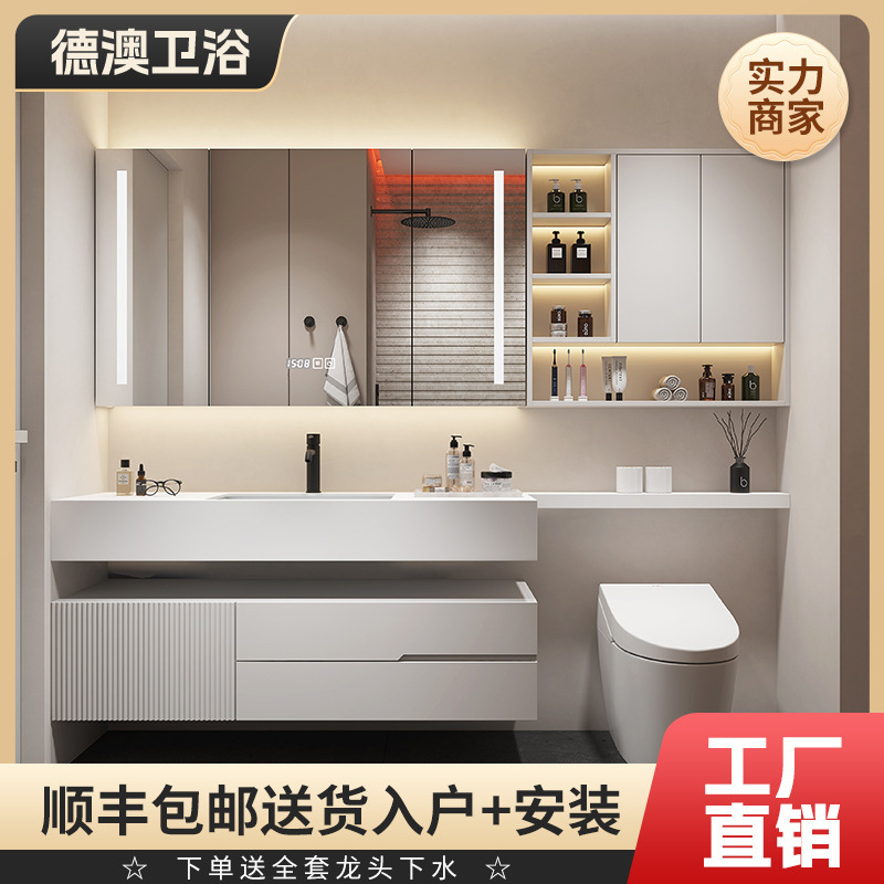 モダンシンプルな浴室キャビネットセット岩板セラミックシームレス一体洗面台洗面台トイレ洗面洗面台キャビネット