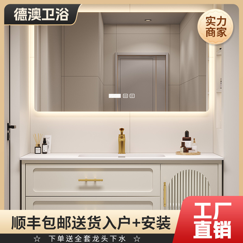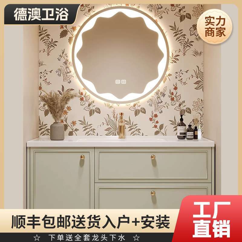 セラミック一体型クリーム風浴室キャビネットセット手洗い洗面キャビネット肌感可麗耐一体型洗面台洗面台