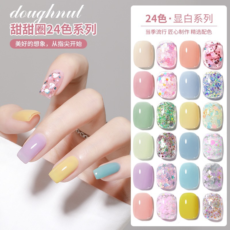 マニキュアドーナツシリーズマニキュア接着剤 2025 新マカロンカラーブラストグリッター光線療法接着剤 24 色セット