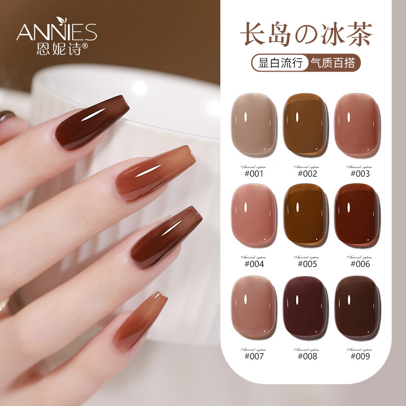 秋冬のロングアイランドアイスティーのマニキュアのゴム2024の新型の白いカラメルの色の氷は琥珀色のメーカーを通して卸売りします。