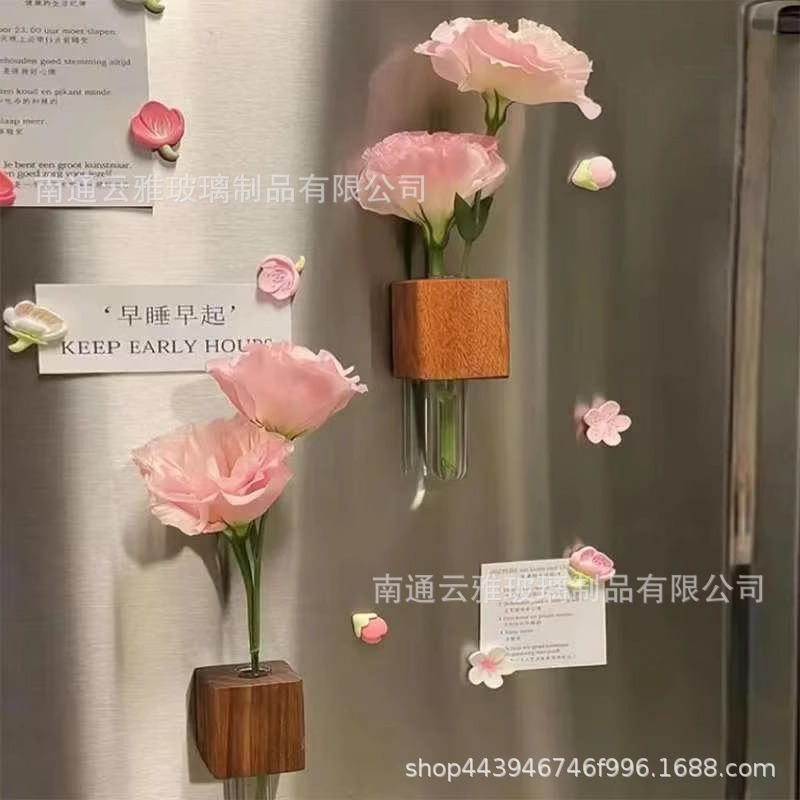 手作り日記、花の冷蔵庫用マグネット、無垢材フラワーアレンジメントボトル、磁気壁面立体装飾フラワーアレンジメント、在庫あり