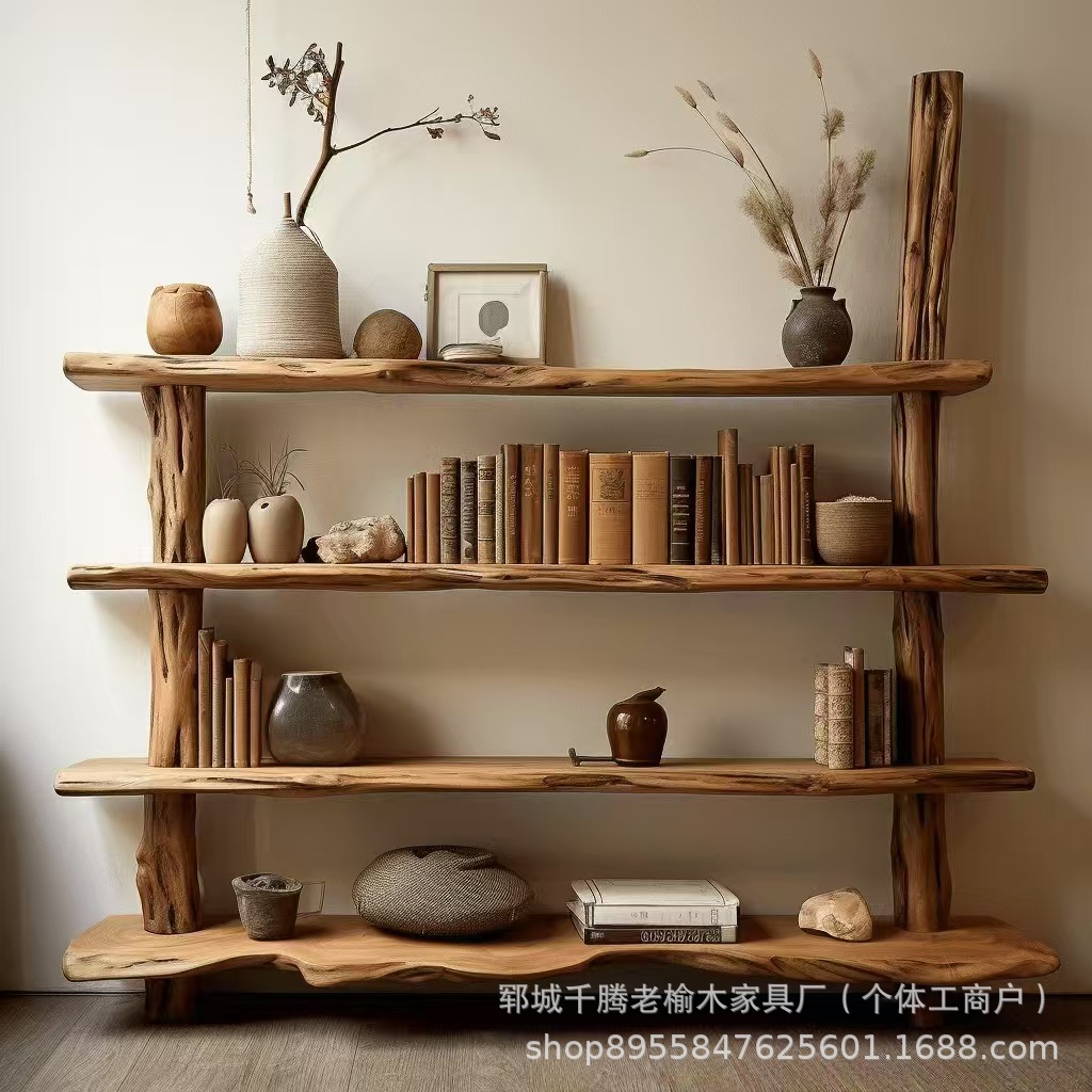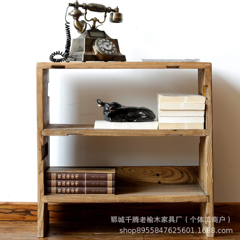古い楡木置物架実木着地本棚模造古博古架老門板風楡木化収納棚