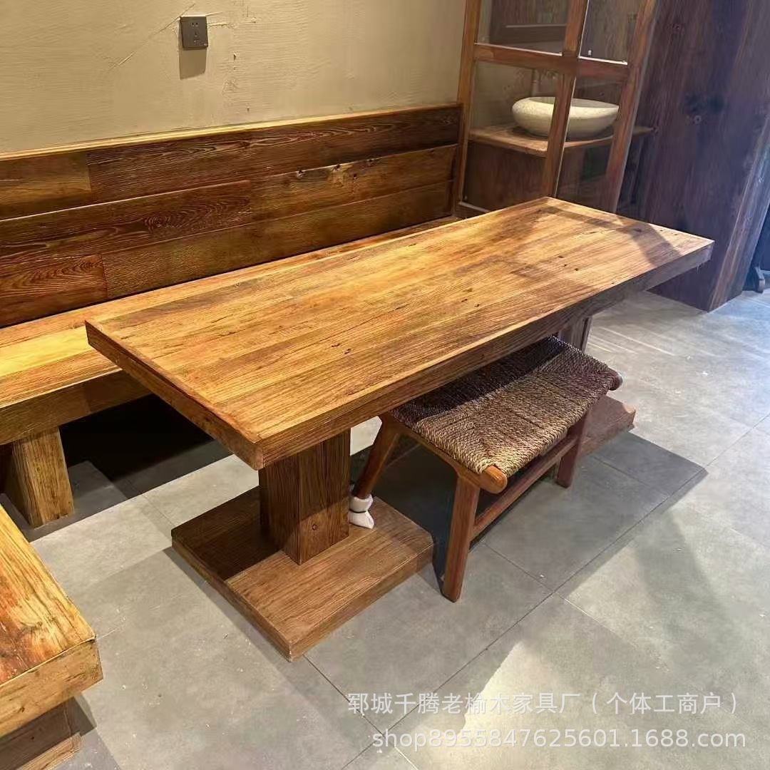 民宿吊り天井風化老楡木板茶卓板復古内装背景仕切り階段実木ペダル木板材