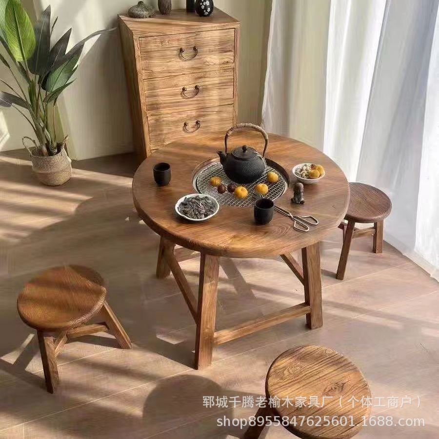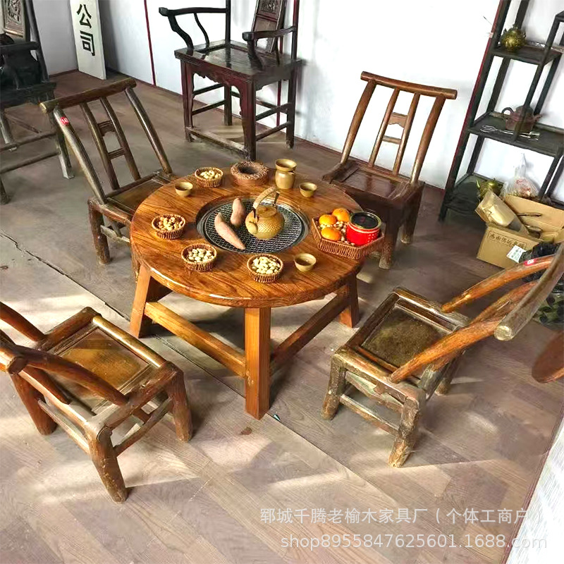 楡木煮茶アイスティー円卓茶何鍋家庭用囲炉煮茶テーブル老楡木テーブル火鍋テーブル