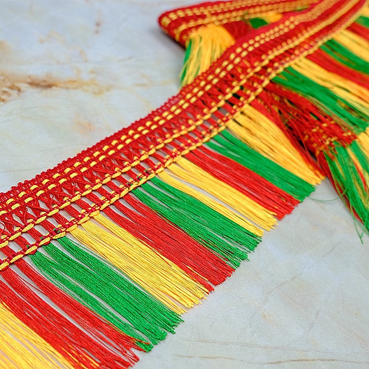 13センチ三色龍須流蘇線民族風カラー排ひげ装飾包頂レース服装補助材料12メートル