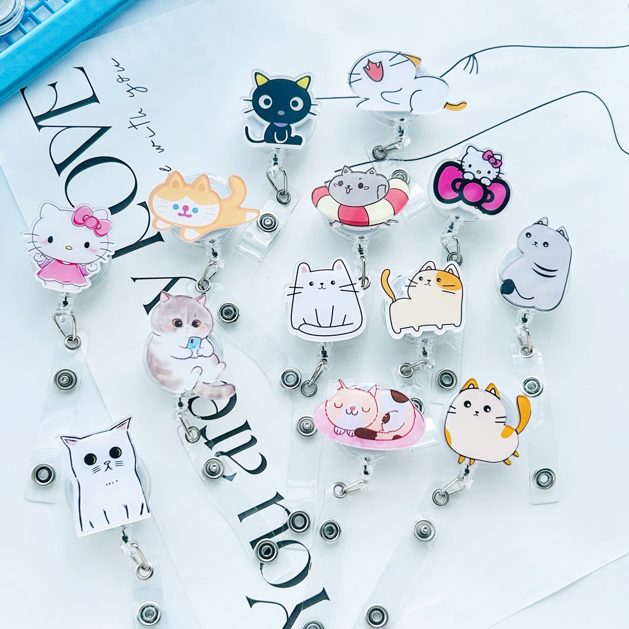かわいい子猫漫画 ID 格納式クリップバックル簡単に引っ張れるバックルナースストラップカードホルダー学生ワークカードブランド