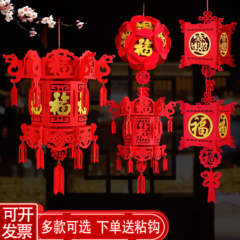 新年の大紅提灯春節のフランネルのお祝いの飾り屋外の玄関のベランダの植毛提灯の福の字の宮灯