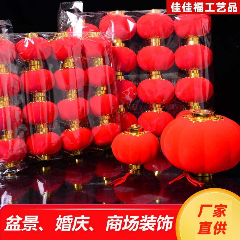 室内の植毛の小さい提灯は赤い提灯の完成品の盆栽を飾ります。