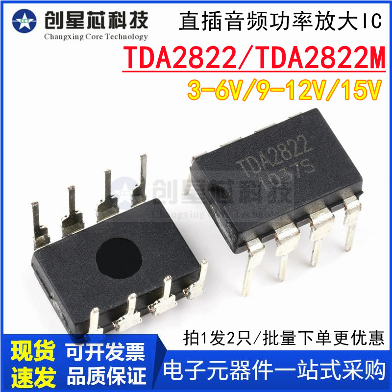 TDA2822 TDA2822M 3-6V 9-12V 15Vオーディオパワー増幅ICインラインディップ-8チップ