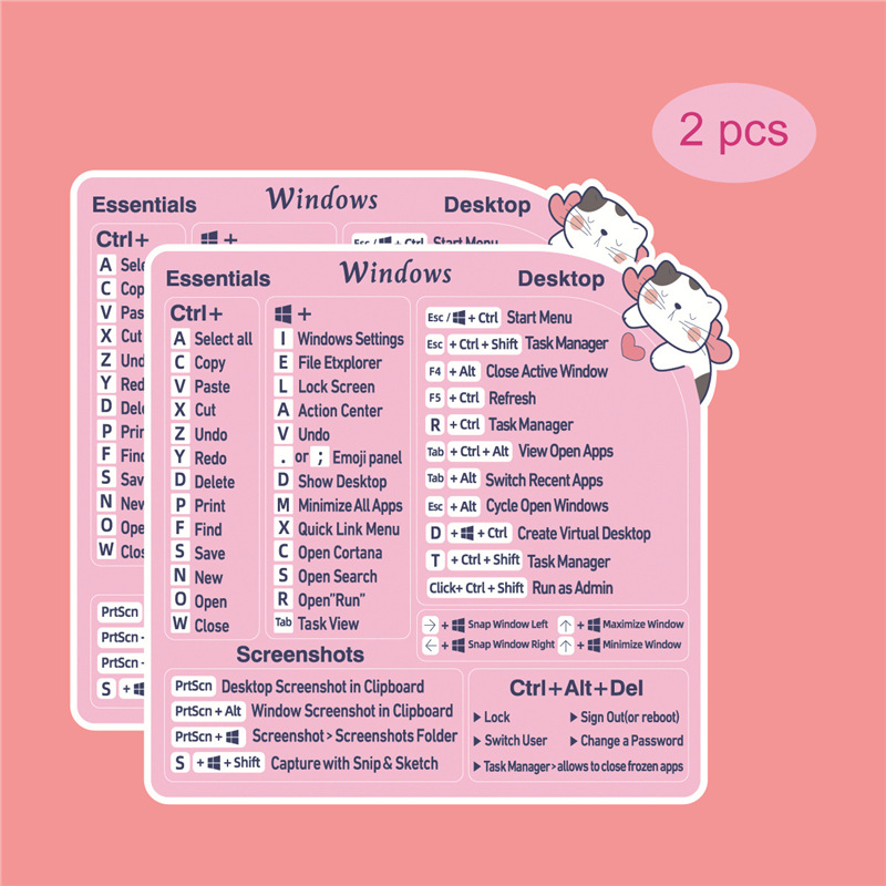 2PCS、ピンクのショートカットステッカーセットノートパソコンのキーボードショートカット参考ヒントシール防水