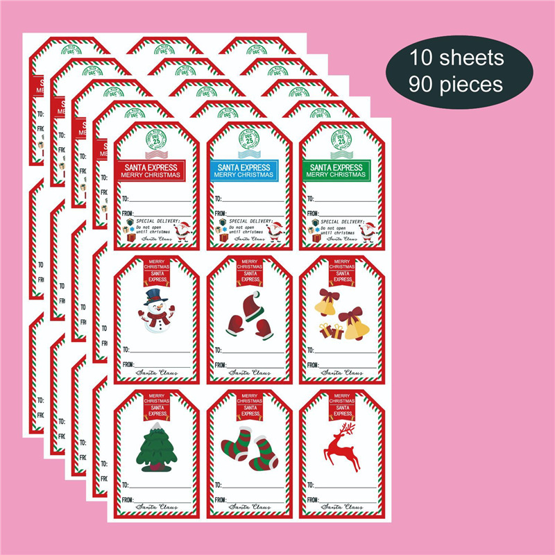 90PCS、3*2インチ、クリスマスのテーマのステッカー、サンタクロース、クリスマスの列车のラベルのステッカー