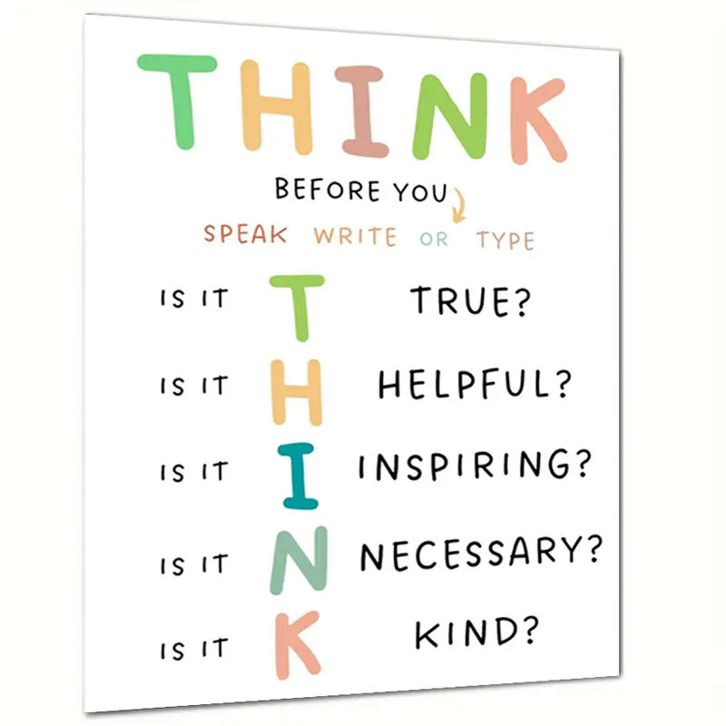 学校の教室、穏やかな隅のポスターの装飾、あなたが話す前に書くかテキストを考える、友情ポスター