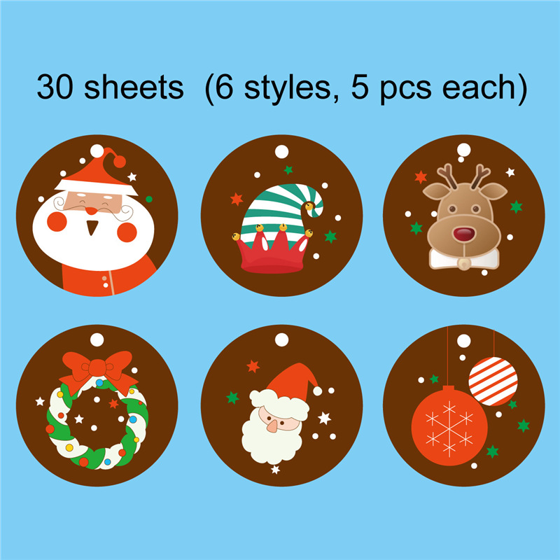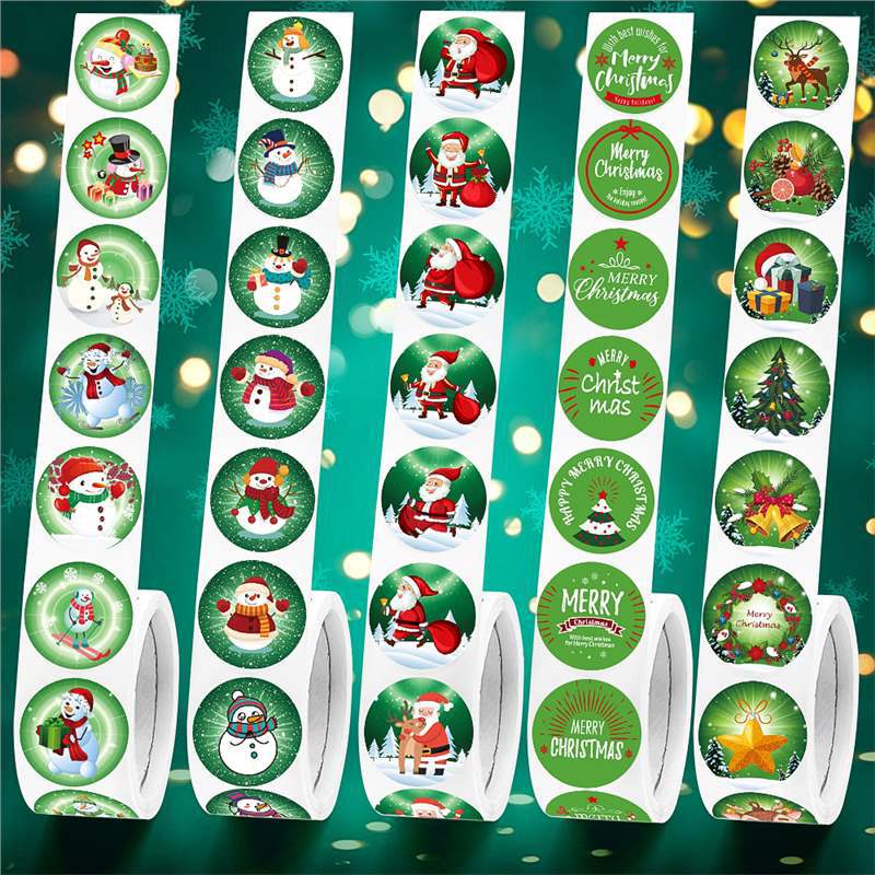 1000PCS、1インチ、クリスマスの日のステッカー、緑のクリスマスのテーマ、サンタのクリスマスの雪だるま