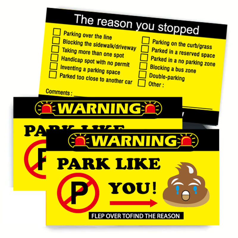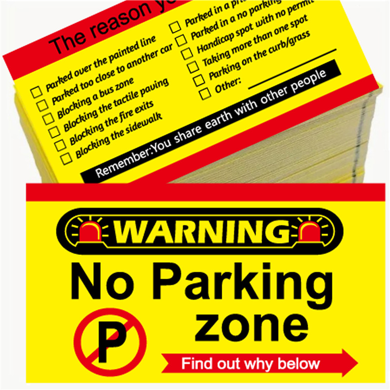 50枚/バッグひどい駐車カードが書かれている、不法駐車原因、許可エリア警告通知なし