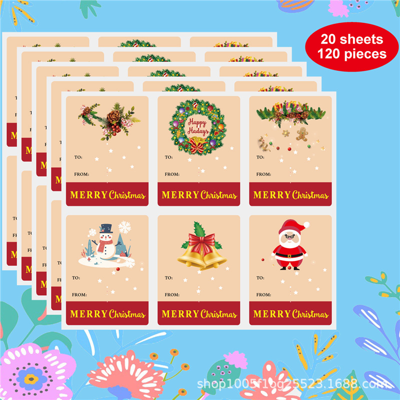 120PCS、aks * 1.8インチ、クリスマスのテーマのステッカー、クリスマスの休日のお祝いのステッカー