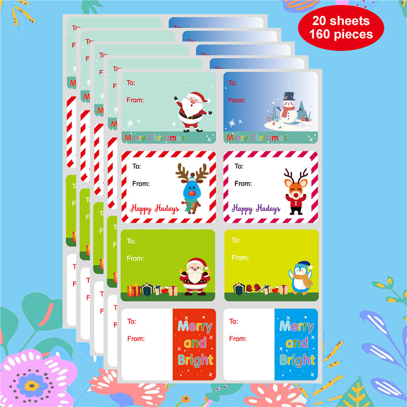 160PCS、aks * 1.8インチ、クリスマスのテーマのステッカー、クリスマスの休日のお祝いのステッカー