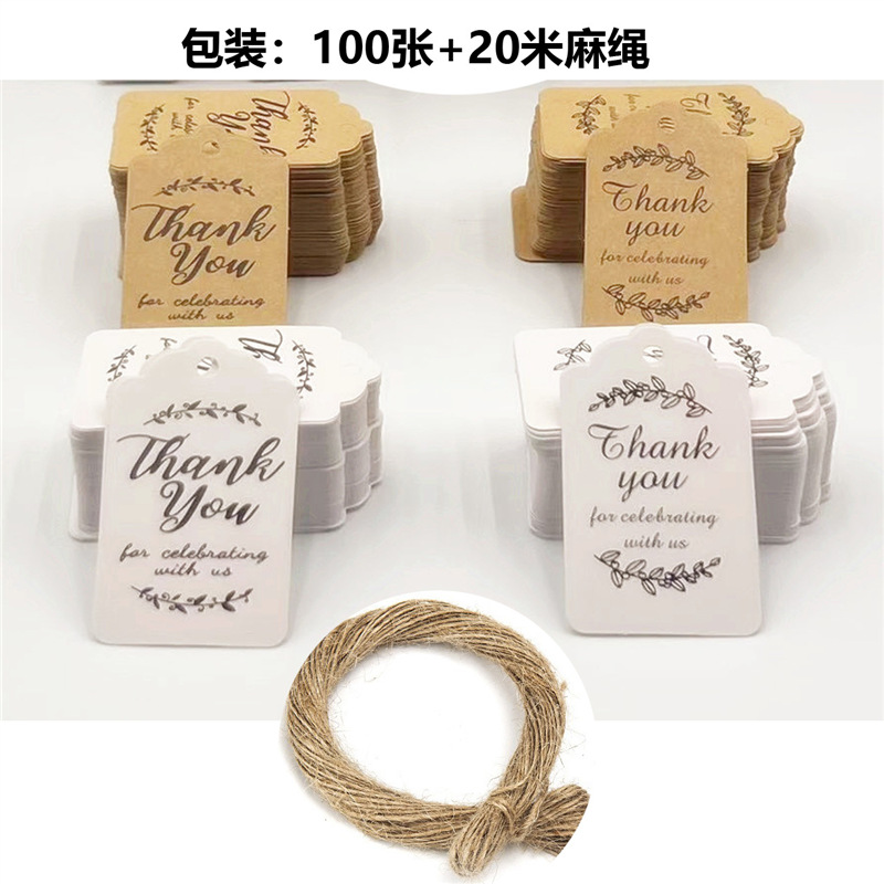 クラフト紙感謝吊り札包装箱吊りカードthankyouのカード掛け (100枚20メートル麻紐)