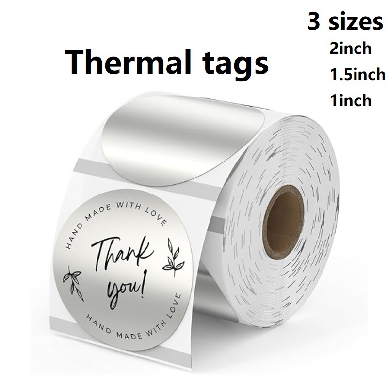 200 個シルバー DIY サーマル印刷ラベル 2/1.5/ 1inch メタルサブシルバーサーマルラウンドステッカーロール