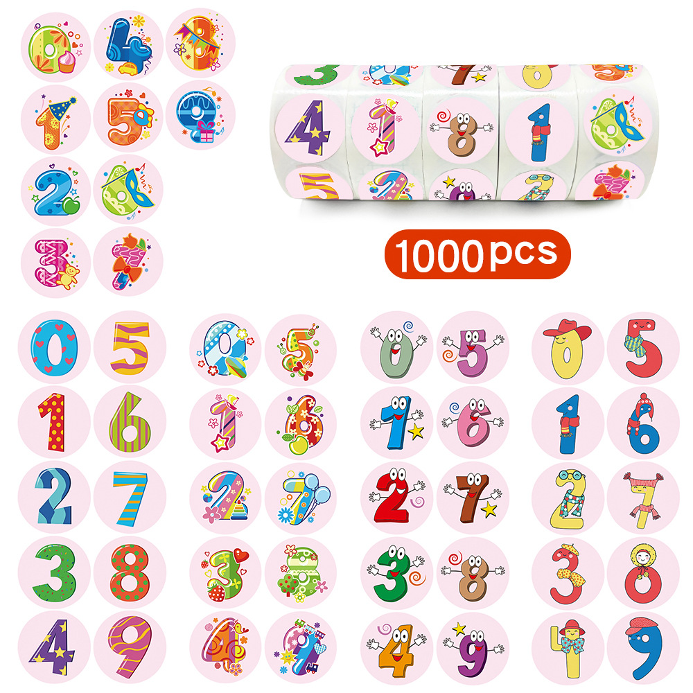1000PCS、1inch、ピンクシリーズ番号ステッカー、学校のご褒美ラベルステッカー