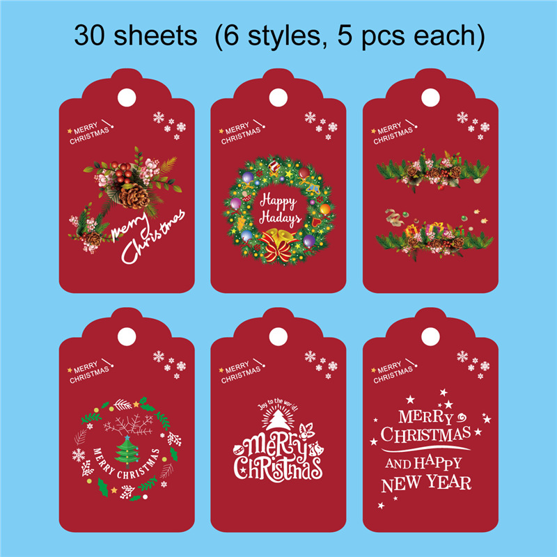 2.5x1.5インチ、30個のクリスマスプレゼントのペンダントテープのひも付き祝日の紙のクリスマス吊り下げラベル