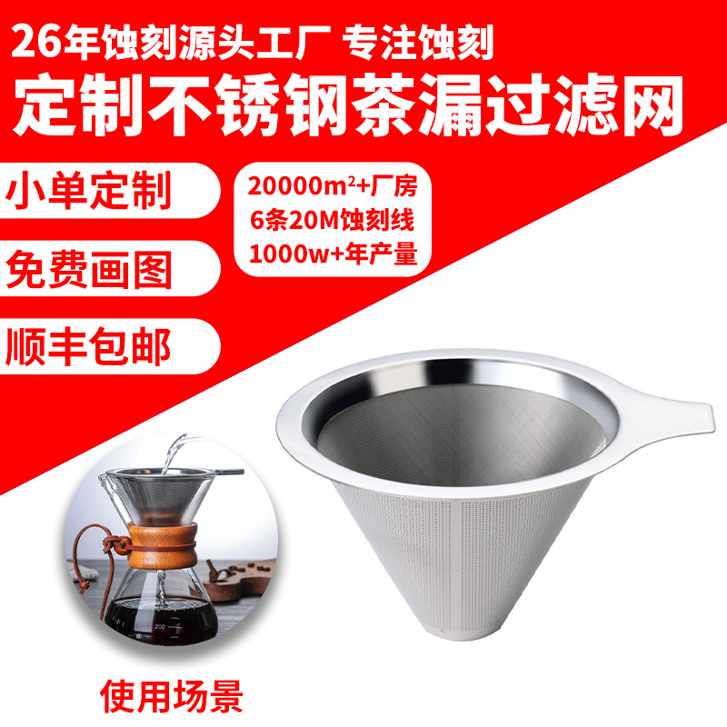 エッチング304ステンレスコーヒーフィルター腐食ステンレス茶漏れ化学エッチング漏斗フィルター