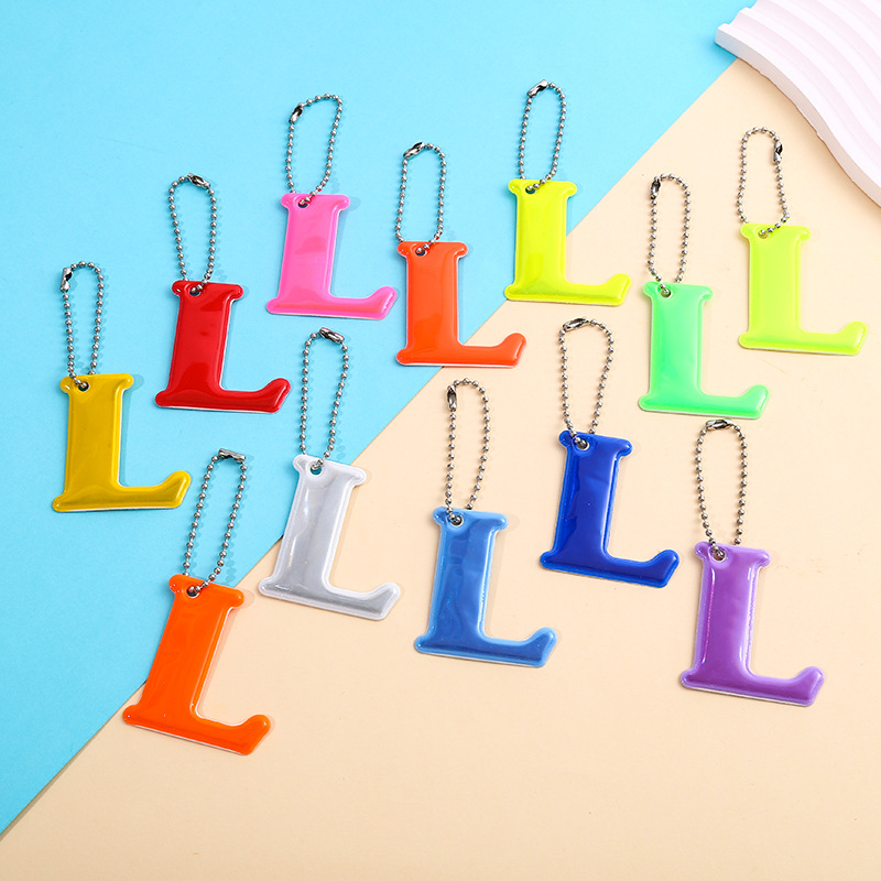 クロスボーダーレター L12 色反射警告ペンダント PVC サイクリングバックパックペンダントナイトロゴキーホルダーペンダント