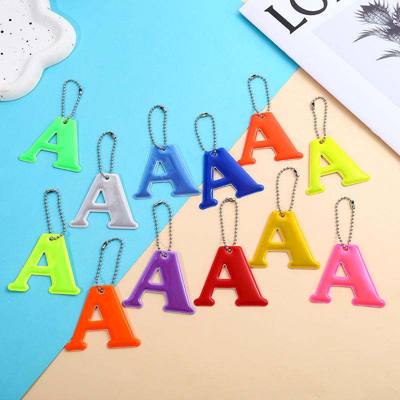クロスボーダーレター A12 色反射警告ペンダント PVC サイクリングバックパックペンダントナイトロゴキーホルダーペンダント