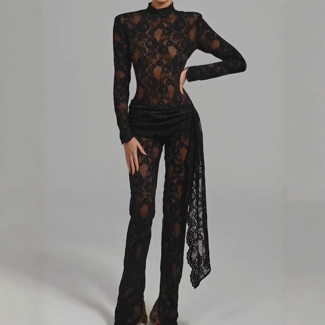 黒い長袖の蝶結びの透かし彫りの暗い紋様の腰のミニの短いスカートの欧米のギャルのお尻の包帯のワンピースのメーカー
