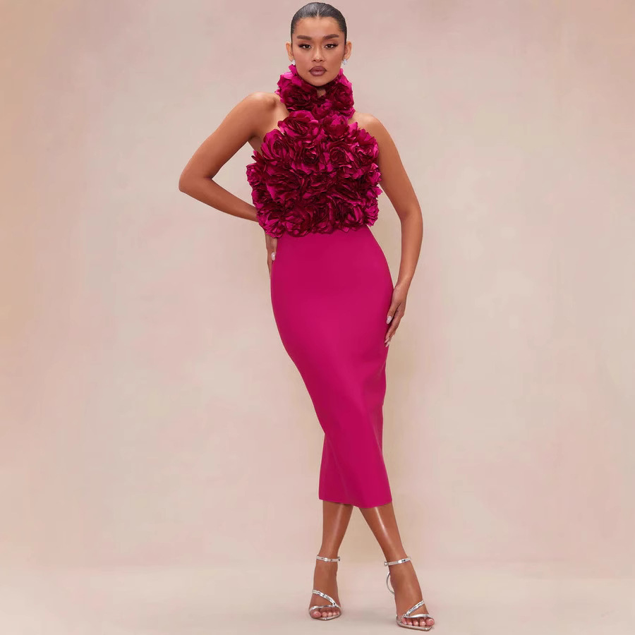 包帯のスカートのタキシードの欧米の対外貿易の越境するハイエンドのドレスの工場は直接販売して首の大きい花のワンピースの新型を掛けます。