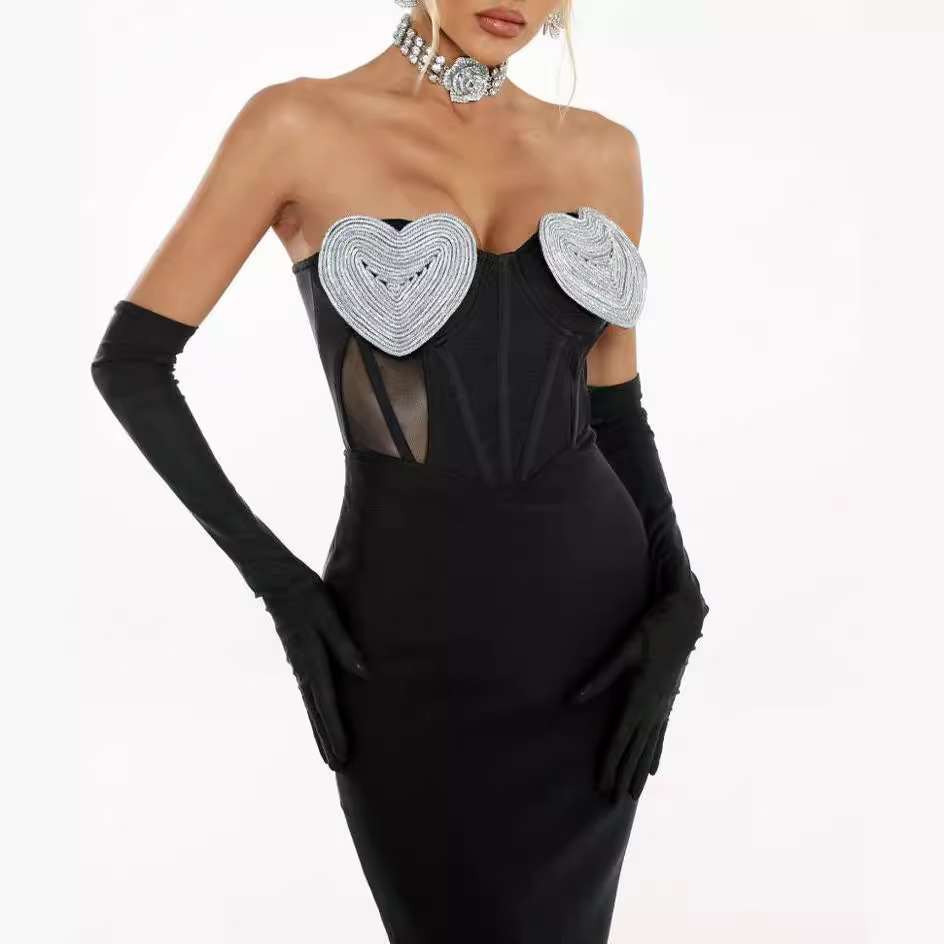 欧米の外国貿易の婦人服の爆発のセクシーな長いタイプのタキシードは身を修めて胸の宴会の気質の包帯のワンピースの黒色を包みます。