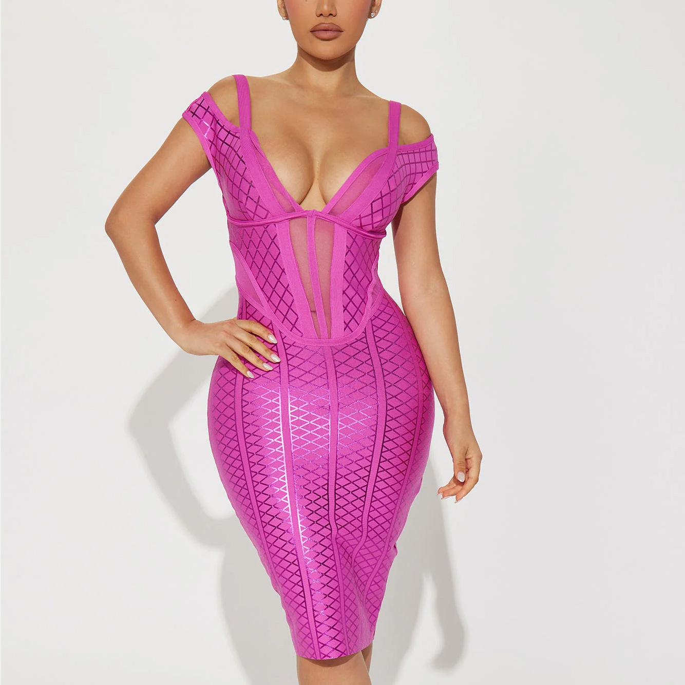 クロスボーダーの爆発的な優雅でセクシーなvネックの網の糸のサスペンダーの金のガードルのお尻の包帯のワンピースのメーカーは直接販売します。