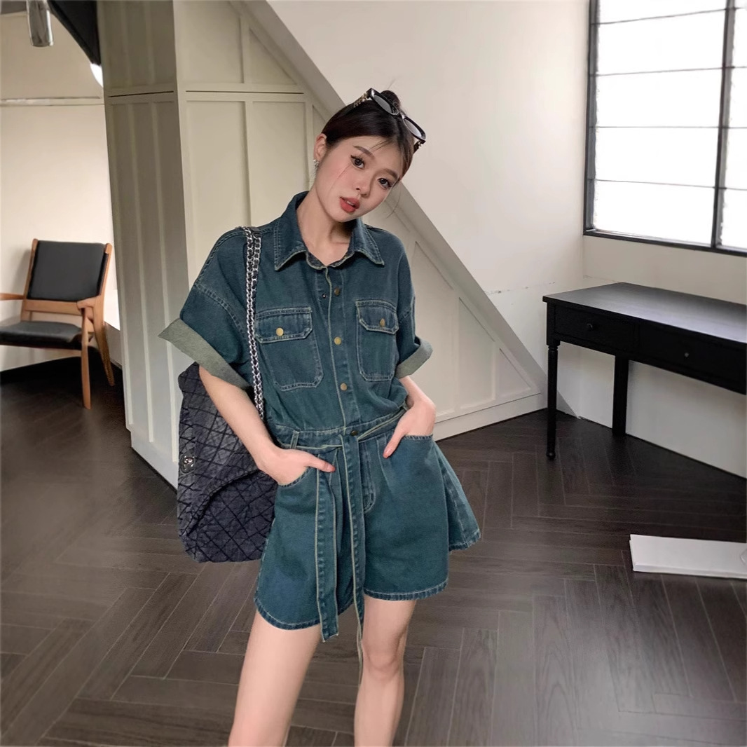 大きいサイズの太ったMMの復古のデニムの半袖の女性の夏の新型の気質は水洗いしてゆったりしています。