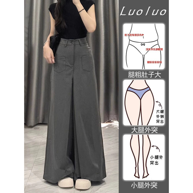 大きいサイズの婦人服-灰色のカジュアルなスーツのスカートの女性のハイウエストの春の新型はやせているナシの形の体つきの広い足のズボンを現します。