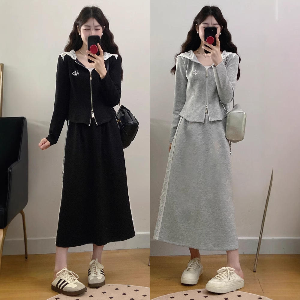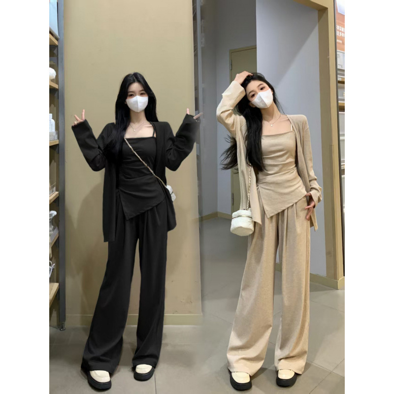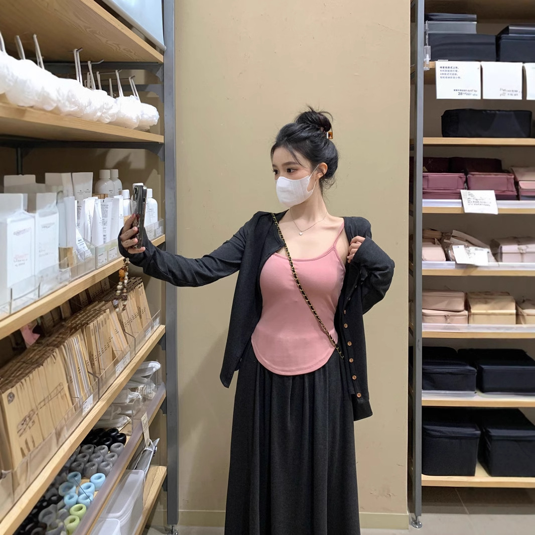 大きいサイズの婦人服2025韓系の新型のニットのカーディガンのコート + キャミソール + 半身のスカートの女性