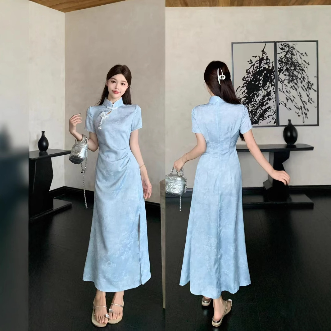 プラスサイズの女性の新しい新しい中国風改良されたチャイナドレス気質ウエストレトロジャカード国民風ロングスリットドレス