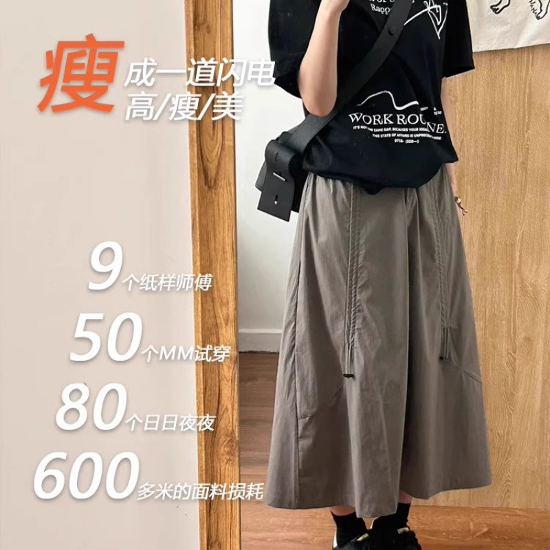 アメリカンレトロ巾着空挺部隊スカートファットmmハイウエストカバー股痩身カジュアルAラインワークウェアスカート