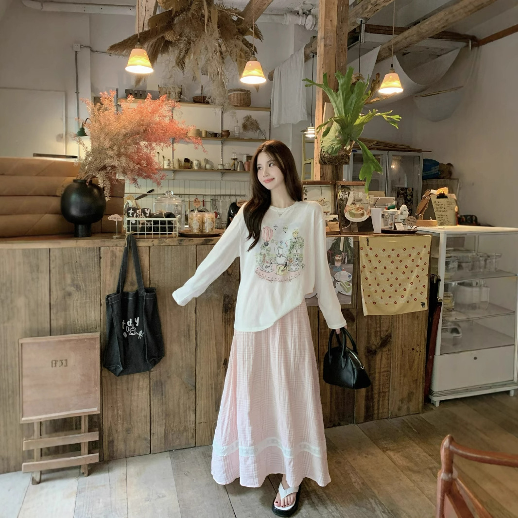 プラスサイズの女性の韓国スーツプリント Tシャツ女性の夏のチェック柄スカート A ラインロングスカートカジュアル 2 点セット