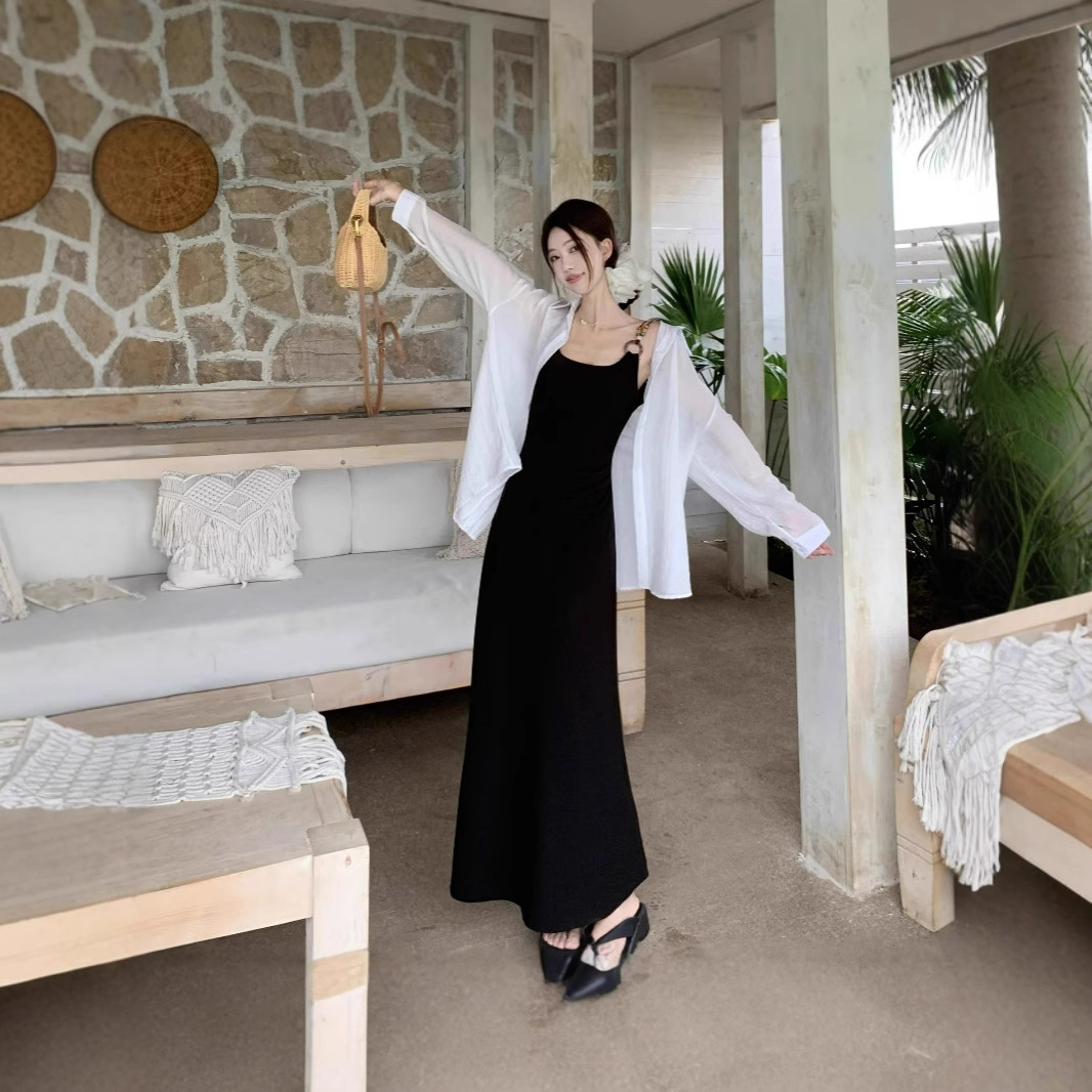 大きいサイズのフレンチハイエンドサスペンダードレスカーディガンスーツ夏の新しいヘップバーンスタイルのスリムでエレガントなロングスカート