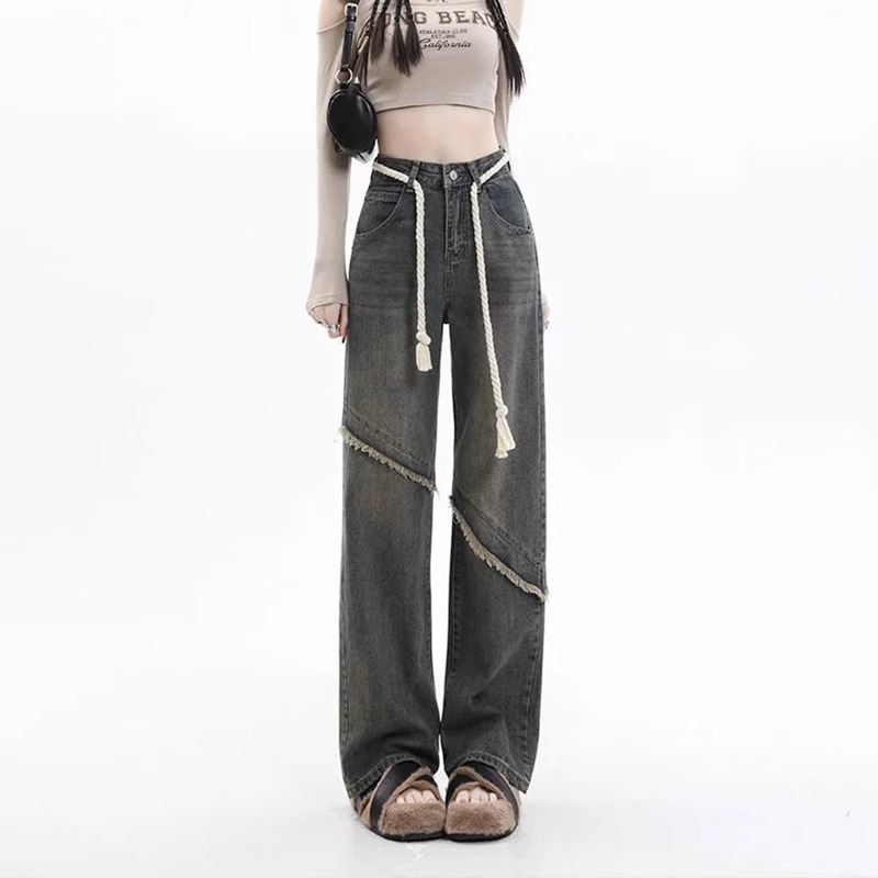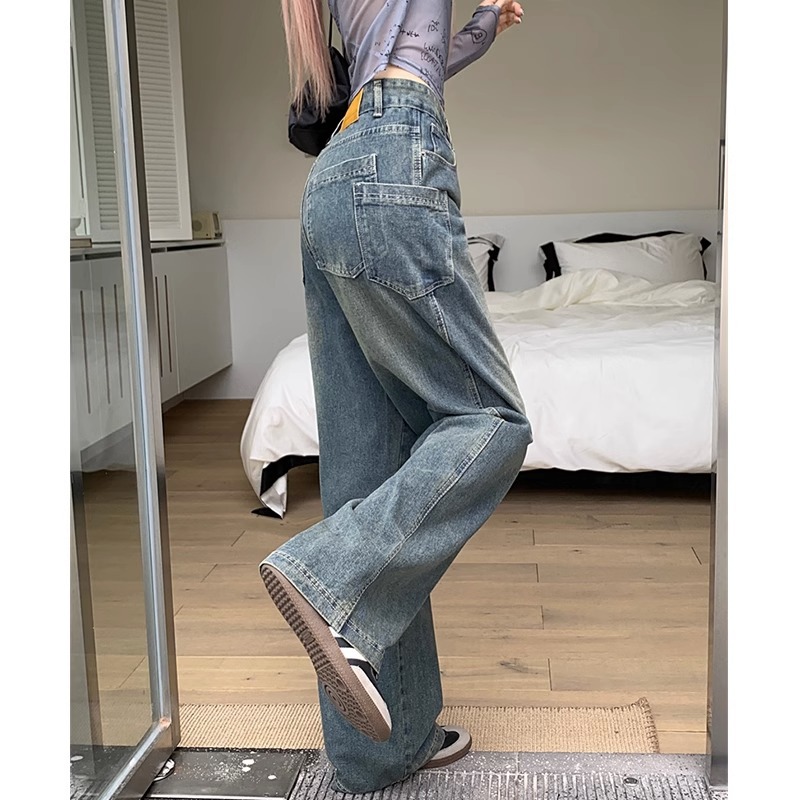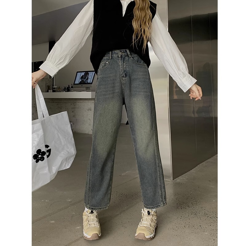 ハイウエストのレトロなジーパンの女性のストレートのズボンの2023年の秋の新型はゆったりしていて痩せています。