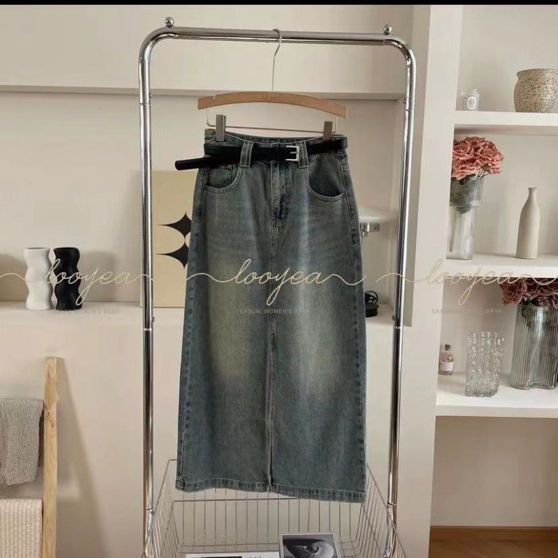 太った妹は腰が高くてやせているデニムのスカートの大きいサイズの前でフォークのa字の中で長いスカートを開けます。