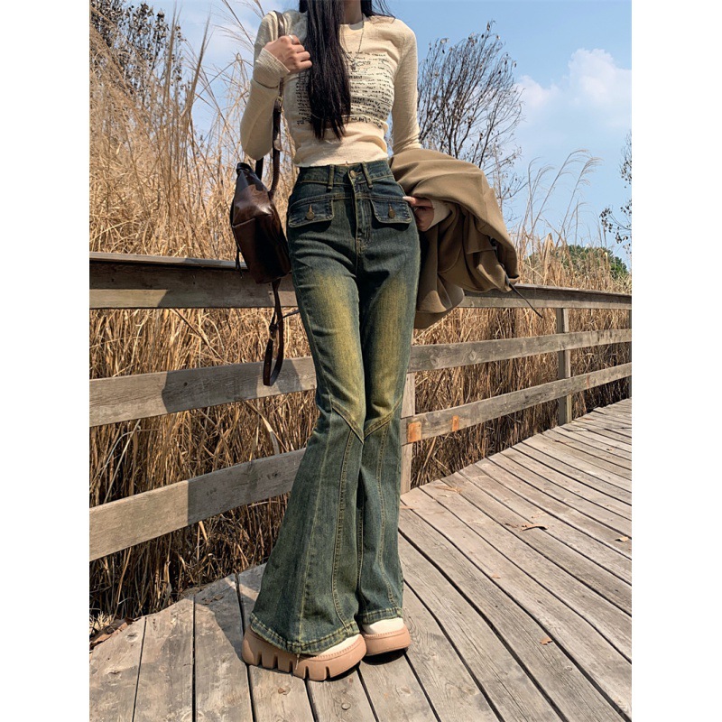 大きいサイズの弾力性は紋様をつかんで古いマイクロスピーカーのジーパンの街頭の復古のギャルの水洗いをして地面のズボンをつなぎ合わせます。