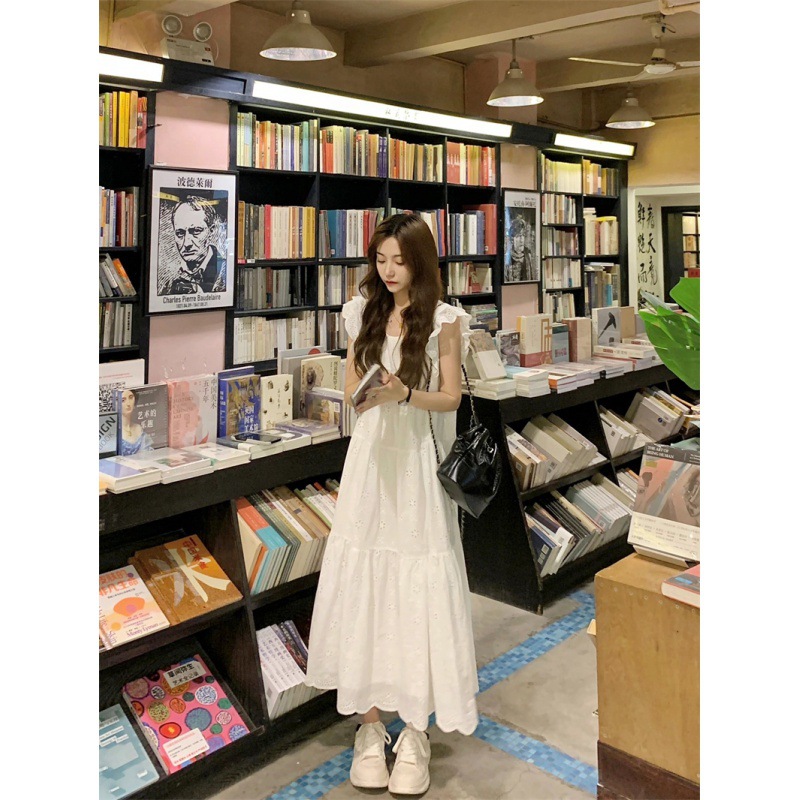 大きいサイズの太った女性向け、小さなフリル袖の白いワンピース、甘い初恋風、ゆったりとした膝丈のロングスカート、特大サイズ