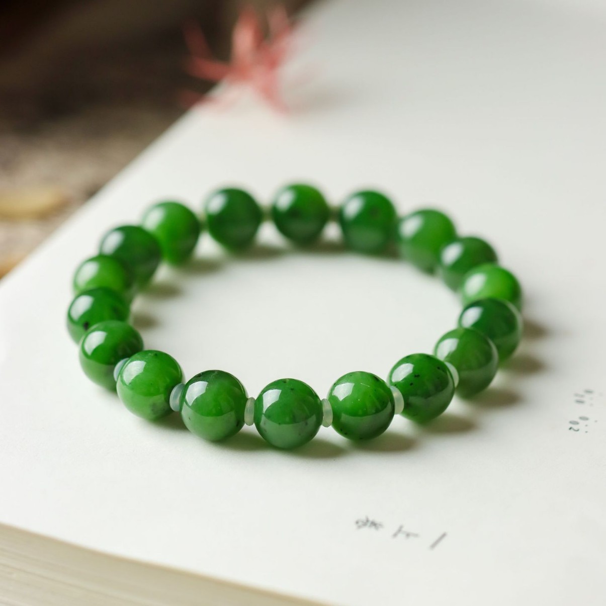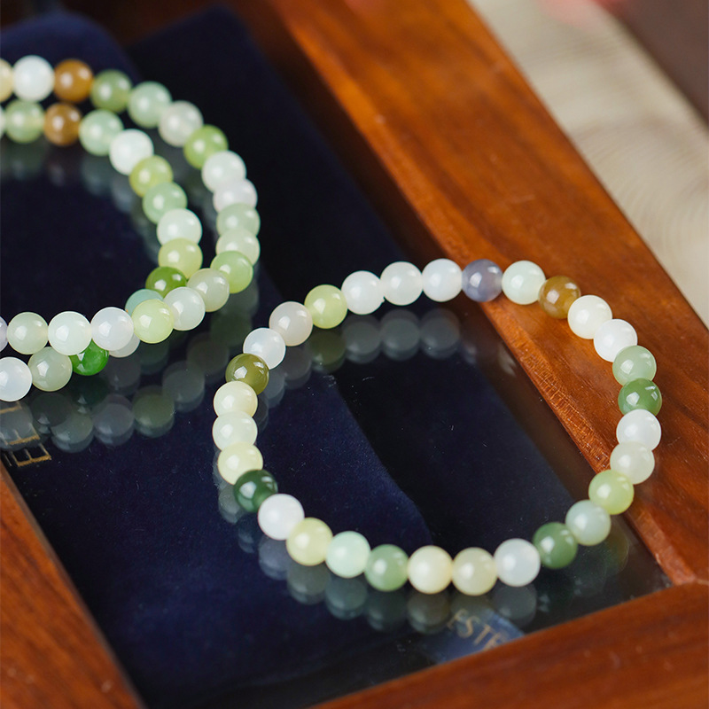 Xiruixin 天然ホータン翡翠マルチ宝ビーズシングルサークルブレスレット小さな新鮮な富、幸福、長寿男性と女性のジュエリーブレスレット