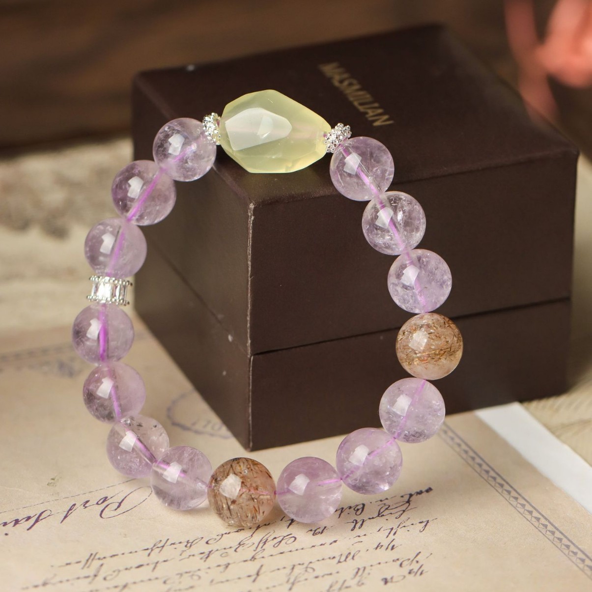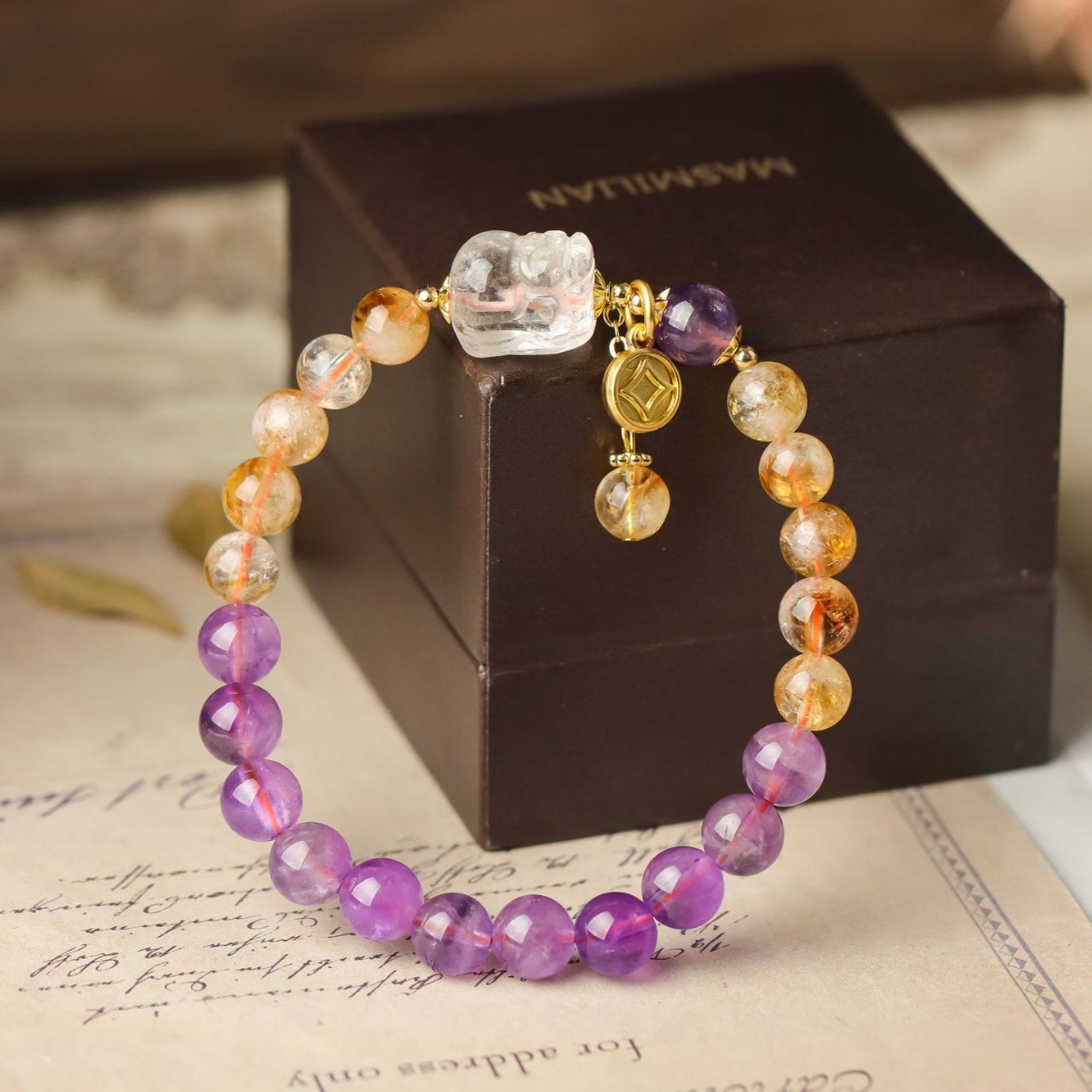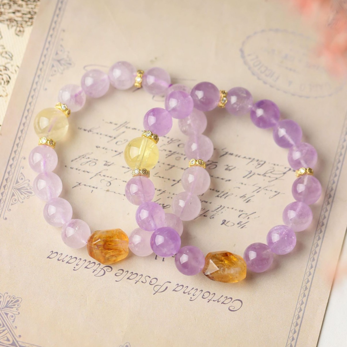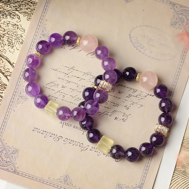 熹瑞天然紫水晶円珠手串女黄塔晶招財輸送ブレスレット軽豪華白水晶手飾り卸売り