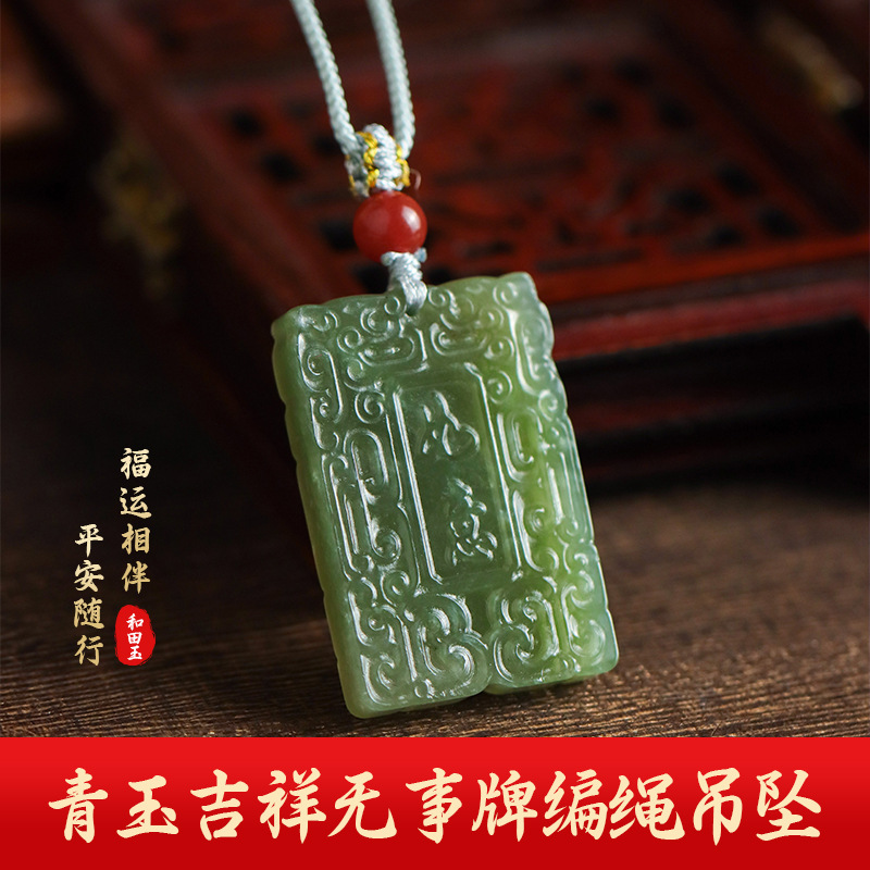 Xirui 天然ホータン青翡翠ペンダント縁起の良い無事なブランド編組ロープネックレス衣類アクセサリー男性と女性の翡翠のブランド卸売