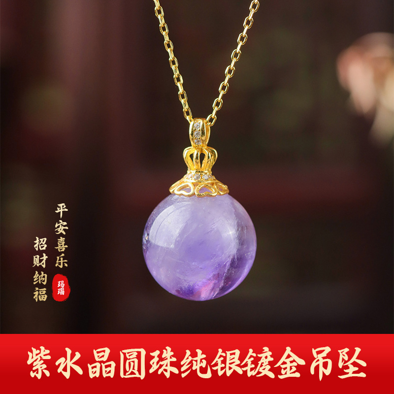 熹瑞天然紫水晶丸珠925純銀金メッキペンダントペンダントペンダントアクセサリー女性鎖骨ネックレス