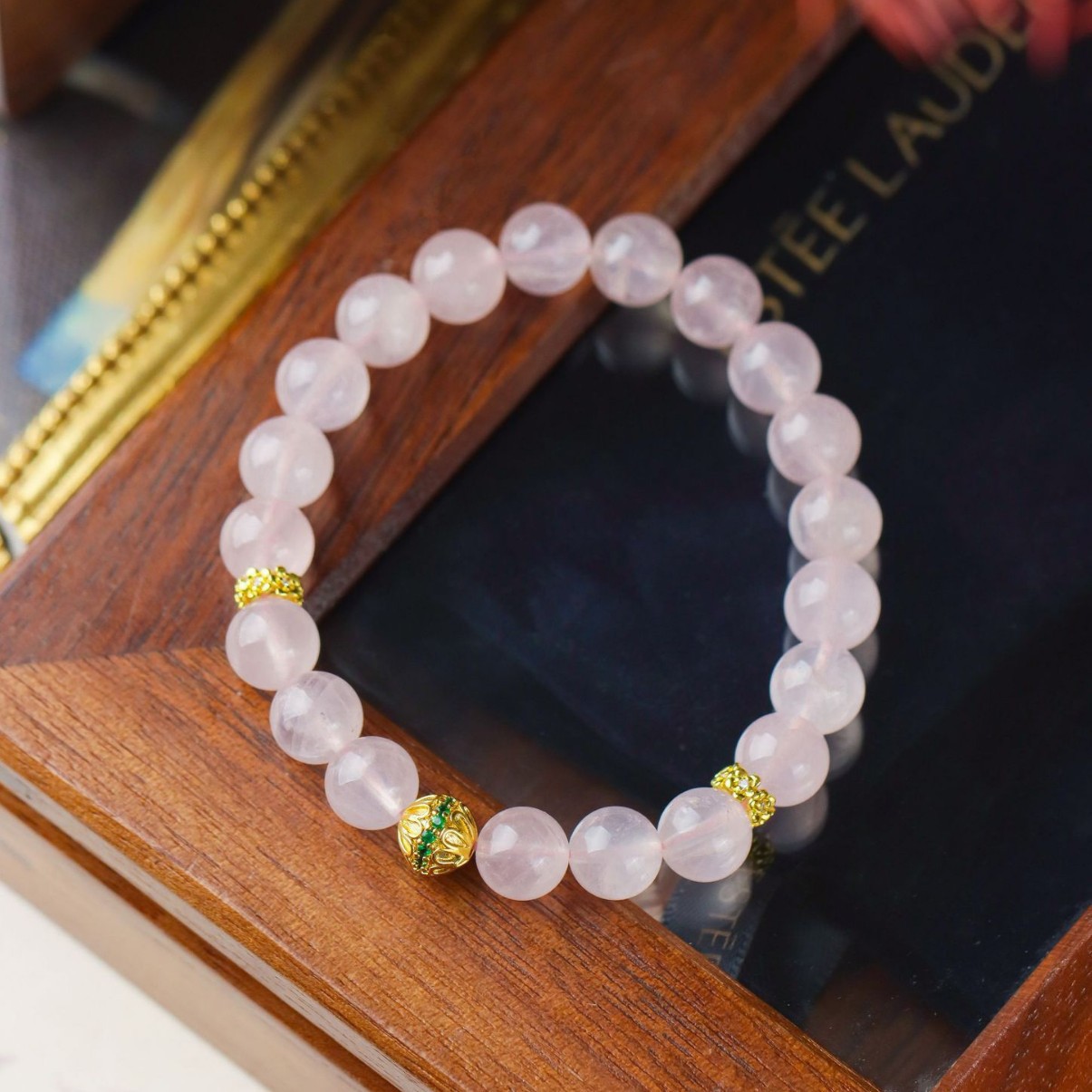 Xirui 天然ピンククリスタルビーズシングルサークルブレスレット女の子のための桃の花ブレスレットシンプルで多用途のライト高級クリスタルブレスレット