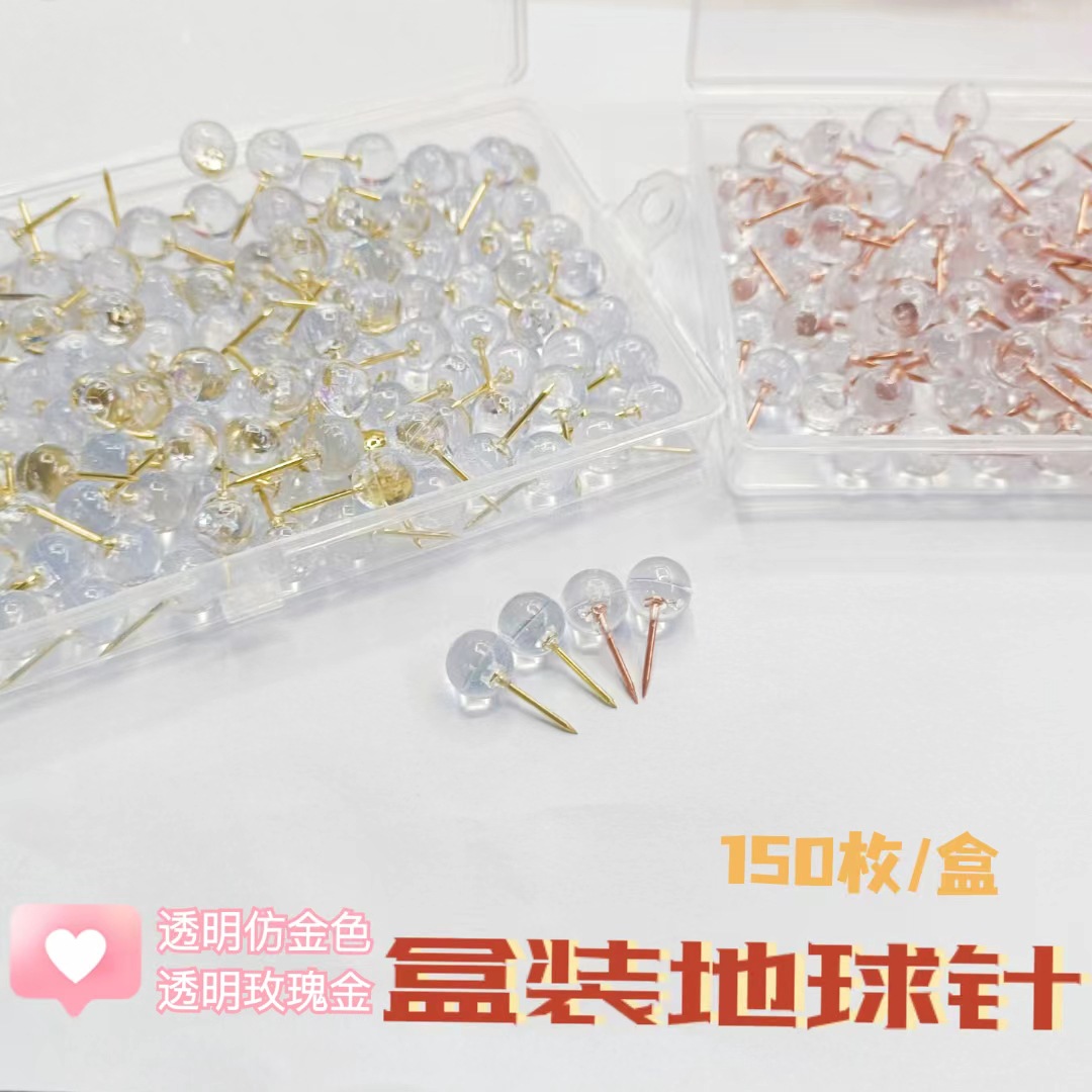 メーカーの透明な金色の地球の針の箱の100枚の柔らかい板の釘の画鋲は透明なバラの金のピンを詰めます。