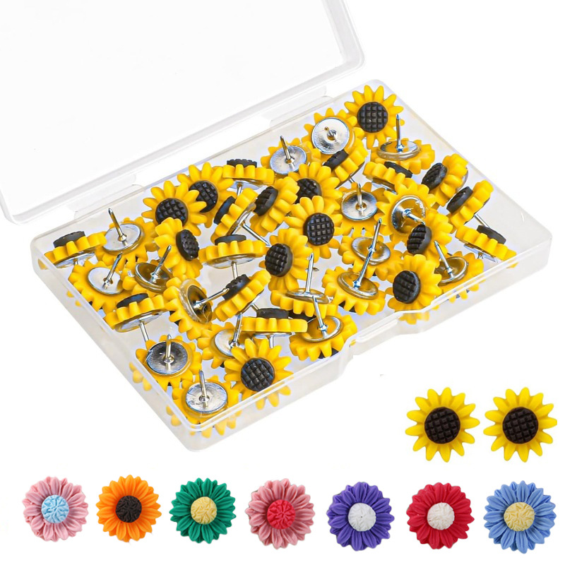 樹脂の花の画鋲の太陽の花のひまわりの箱の大きい頭の釘は写真の壁の固定針を押して飾ります。